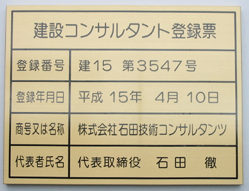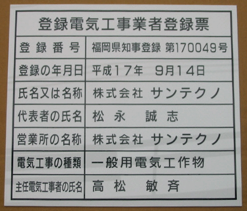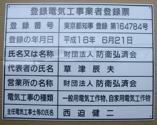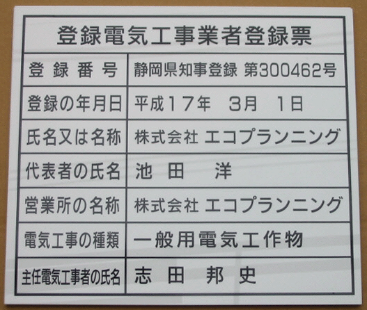 | 一級建築士事務所登録票 登録電気工事業者届出済票 各種登録票 投資顧問業者登録票 | |